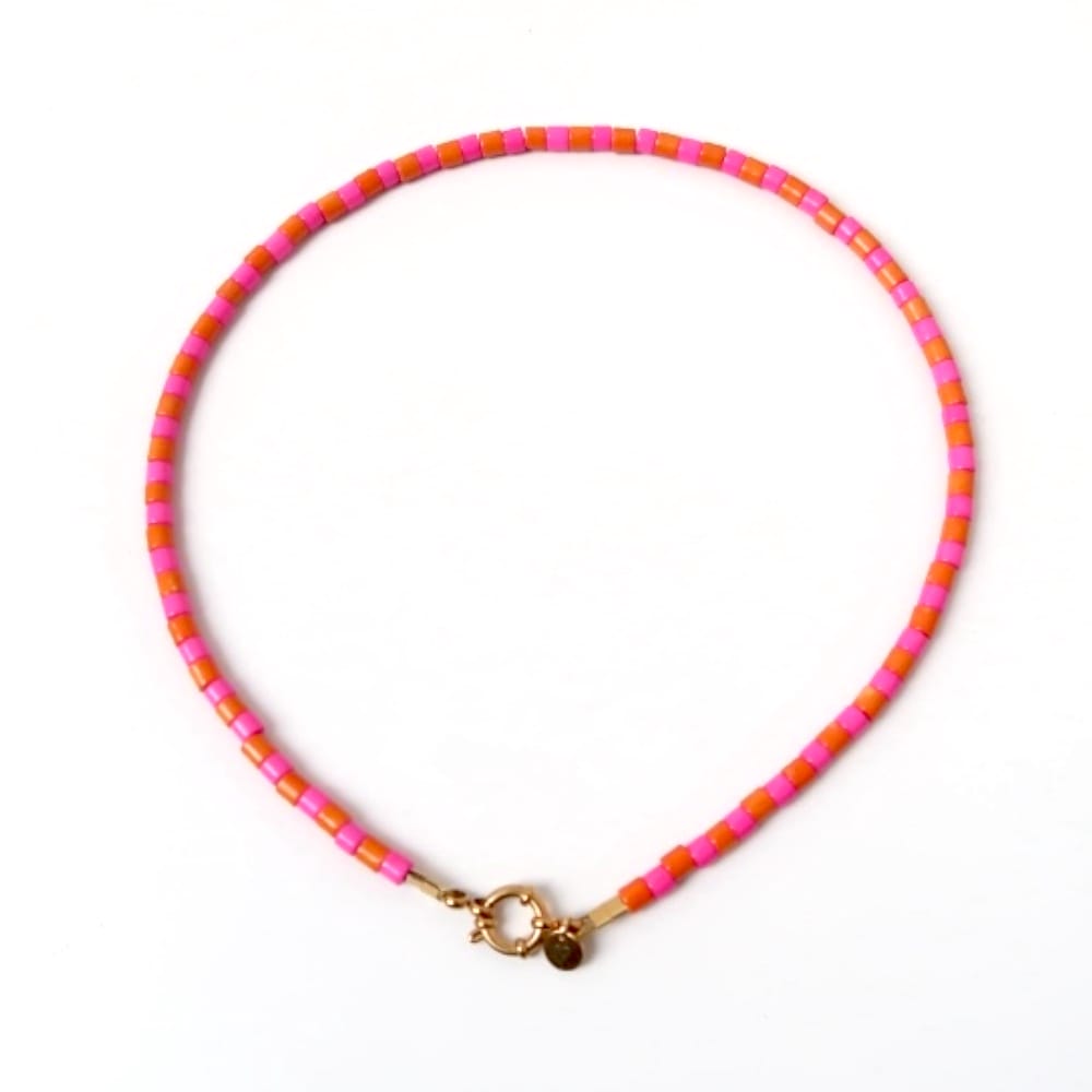 Introducing the LOVEissue Necklace Stripe – a playful and stylish accessory featuring alternating beads in two vibrant, contrasting colors. This eye-catching necklace creates a striped pattern that adds a unique touch to any outfit, making it perfect for both casual and special occasions.