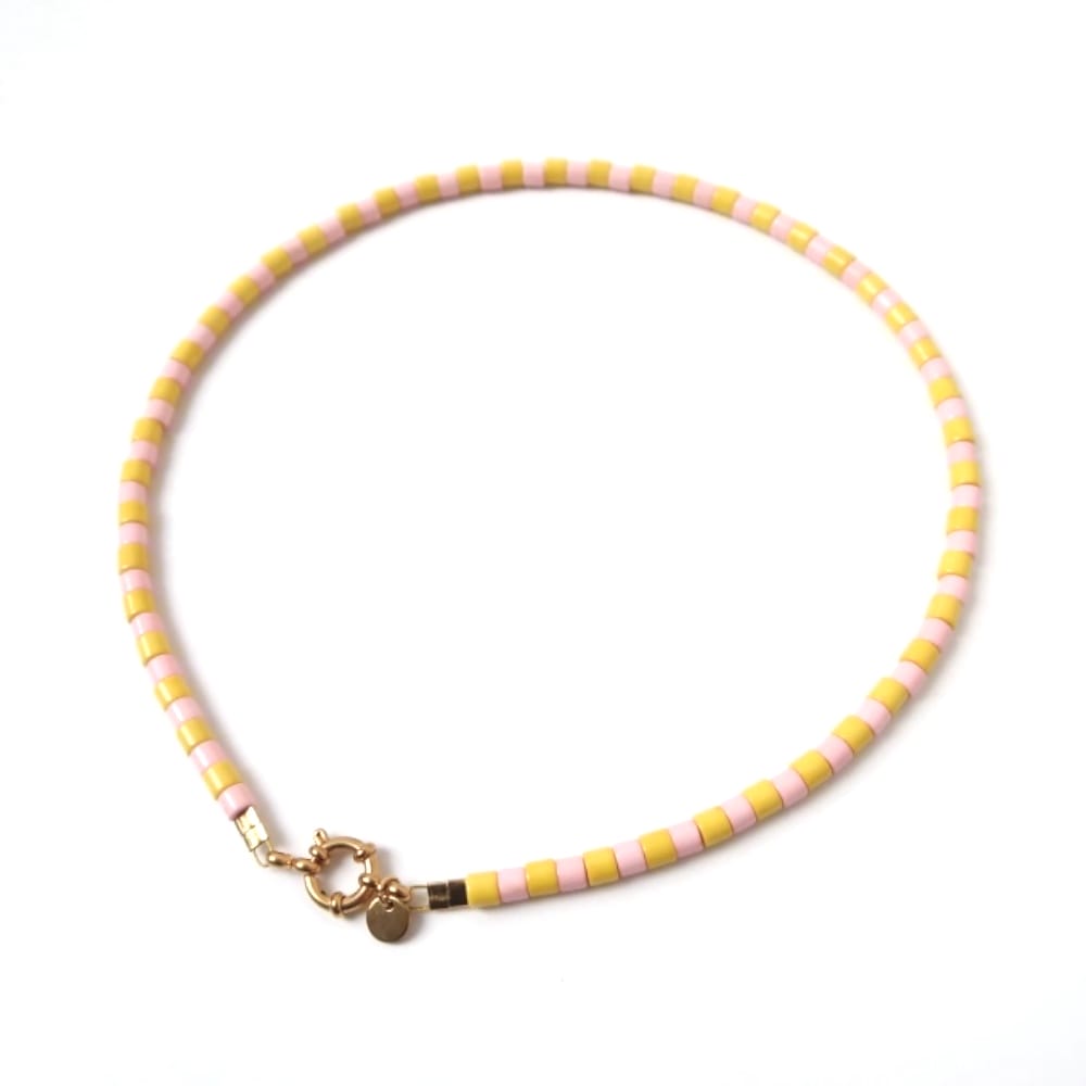 Necklace | Stripe yellow/light pink
